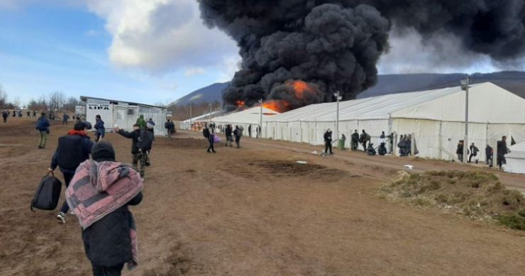 U migrantskom kampu Lipa kod Bihaća oko 11 sati došlo je do velikog požara u jednom smještajnom objektu, a vatra se zatim počela lančano širiti, piše Klix.