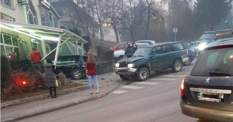 Vozač automobila Toyota 4runner izgubio je kontrolu nad svojim vozilom. On je udario u parkirani automobil marke Golf 4 koji je od siline udarca završio u poslovnom objektu.