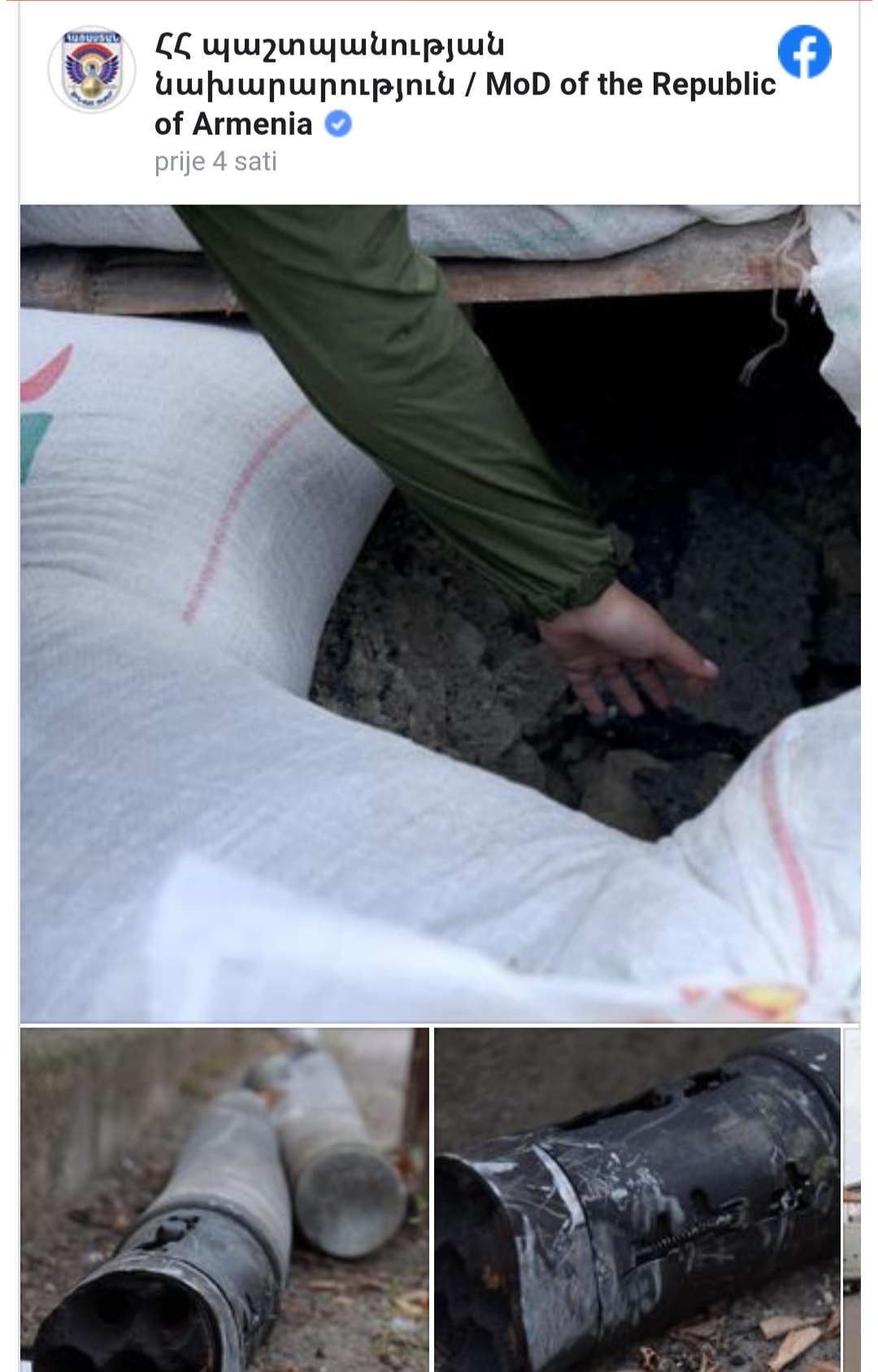 Objavljene su i fotografije azerbejdžanske rakete i mjesta na kojem je pala u blizini škole i vrtića u Stepanakertu.