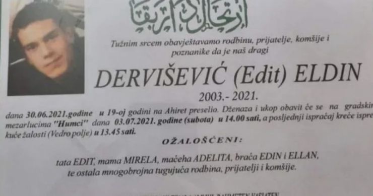 -Otišao si, a otišlo je i pola mene zajedno sa tobom. Bio si ono što se jednom ima u životu ponosu moj, dobričino moja, živote bratov. Nisi ovo zaslužio ali Bog je htio drugačije. Da te dragi Allah uvede u džennet, jer manje nisi ni zaslužio. Voli te tvoj brat najviše na svijetu, napisao je na Facebooku Eldinov brat Edin.