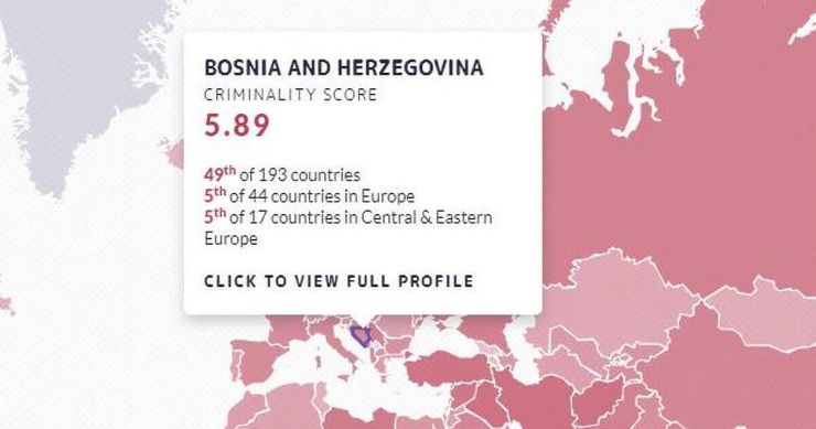 Bosna i Hercegovina zauzima 49. mjesto od 193 zemlje članice Ujedinjenih nacija po zastupljenosti organizovanog kriminala, dok je među 44 evropske zemlje peta na listi. Podaci su to Globalnog indeksa organizovanog kriminala za 2020. godinu.