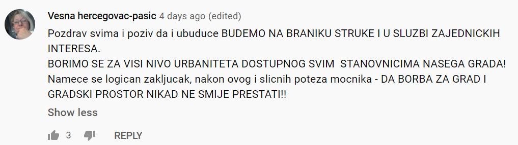 Stanare je na Youtube kanalu Maguda 3 javnim komentarom podržala i istaknuta sarajevska urbanistica, dipl.ing.arh. Vesna Hercegovac-Pašić i neumorni borac za očuvanje urbanih vrijednosti Sarajeva.