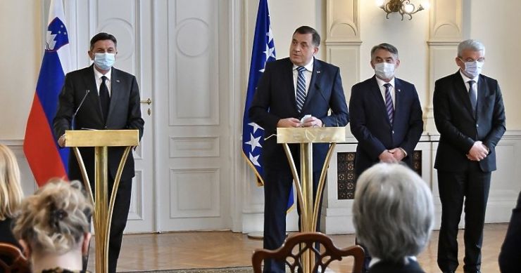 Predsjednik Slovenije Borut Pahor susreo se danas u Sarajevu sa članovima Predsjedništva BiH, Miloradom Dodikom, Željkom Komšićem i Šefikom Džaferovićem.