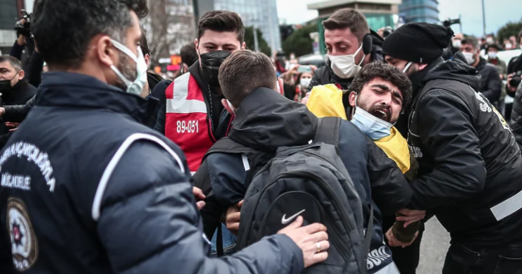 Nedugo nakon toga napetosti između policije, koja je štitila zgradu rektorata, i studenata, koji su se nalazili ispred kapije, eskalirale su te je došlo do velikog sukoba. Više od 60 studenata uhapšeno je u prvom valu protesta, a povodom svega oglasio se i turski predsjednik Erdogan te je studente nazvao terorističkom skupinom i naglasio kako se ne radi o časnim studentima.