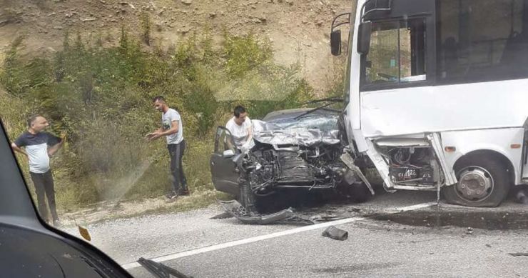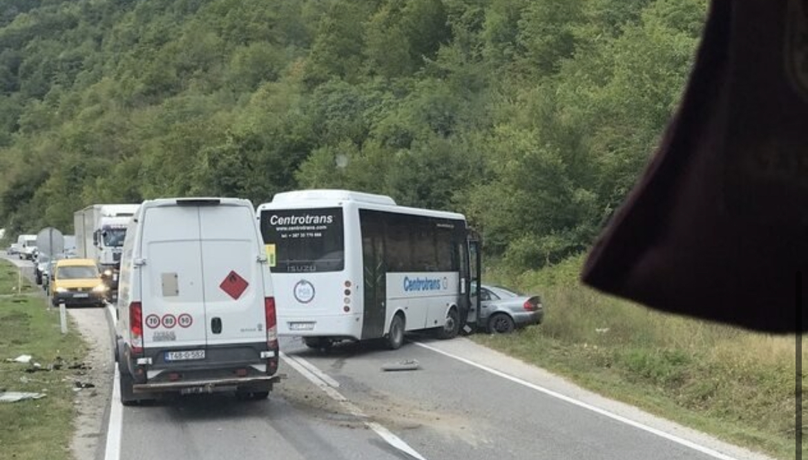 Saobraćaj je potpuno obustavljen, a kako su nam kazali iz Operativnog centra MUP-a KS u nesreći su učestvovali minibus i putnički automobil.