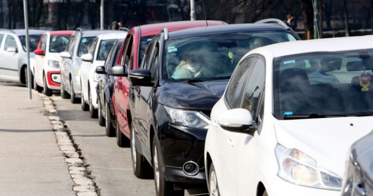 Veliki broj vozila stvorio je kolonu pred punktom za drive-in testiranje na koronavirus na parkingu kod Mosta ‘Suade i Olge’ u Sarajevu.