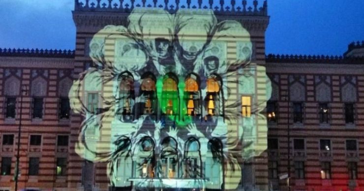 Povodom 26. godišnjice genocida u Srebrenici sarajevska Vijećnica večeras je simbolično osvijetljena Cvijetom Srebrenice.