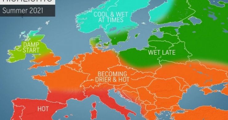 Dok Ujedinjeno Kraljevstvo i Irska čekaju dolazak tipičnih ljetnih temperatura, runde pljuskovitog vremena zadržavat će se nad regijom barem do početka ljeta. Iako će se vlažno vrijeme zadržati nad Irskom, Škotskom i sjevernom Engleskom barem tokom juna i do jula, prognozira se da će oborine biti ispod prosjeka tokom ostatka sezone.