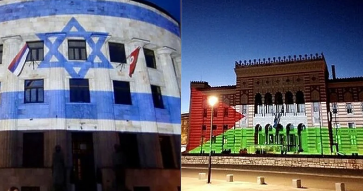 Kao po nepisanom pravilu, dok slušamo moralne lekcije, uvijek pobijedi neki skriveni interes. I nakon što su Sarajevo, ali i Mostar i neki drugi bh. gradovi projektovali palestinsku zastavu u znak podrške, nekoliko dana kasnije stigao je inat odgovor iz RS-a. U Banjoj Luci, na zgradi sjedišta entiteta projektovana je zastava Izraela, a isto je učinjeno i u Trebinju. Obrazloženje je bilo da se radi o podršci jevrejskom narodu zbog eskalacije sukoba.