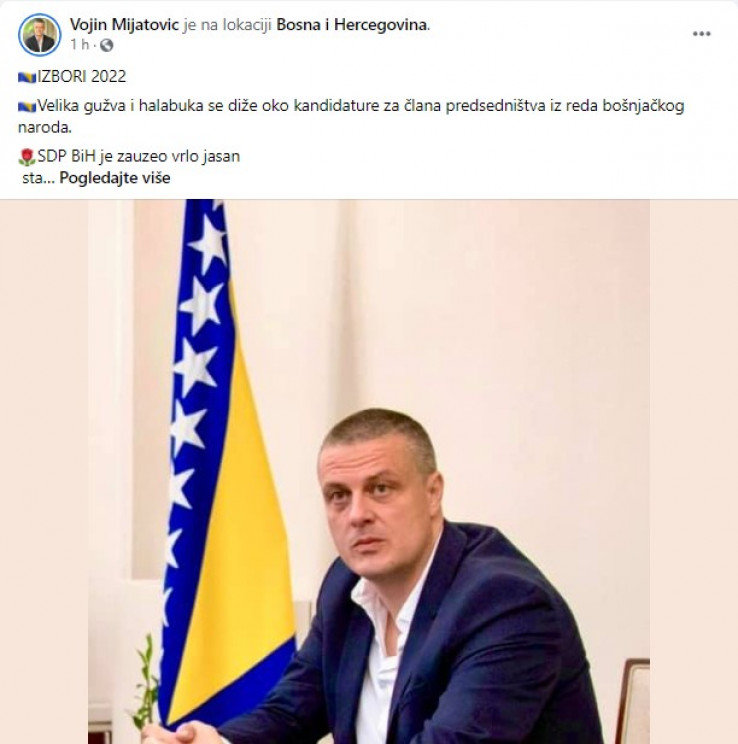 Potpredsjednik SDP-a BiH Vojin Mijatović na svom Facebook profilu objavio je statu u kojem kaže da se diže velika halabuka oko kandidature za člana predsjedništva iz reda bošnjačkog naroda.