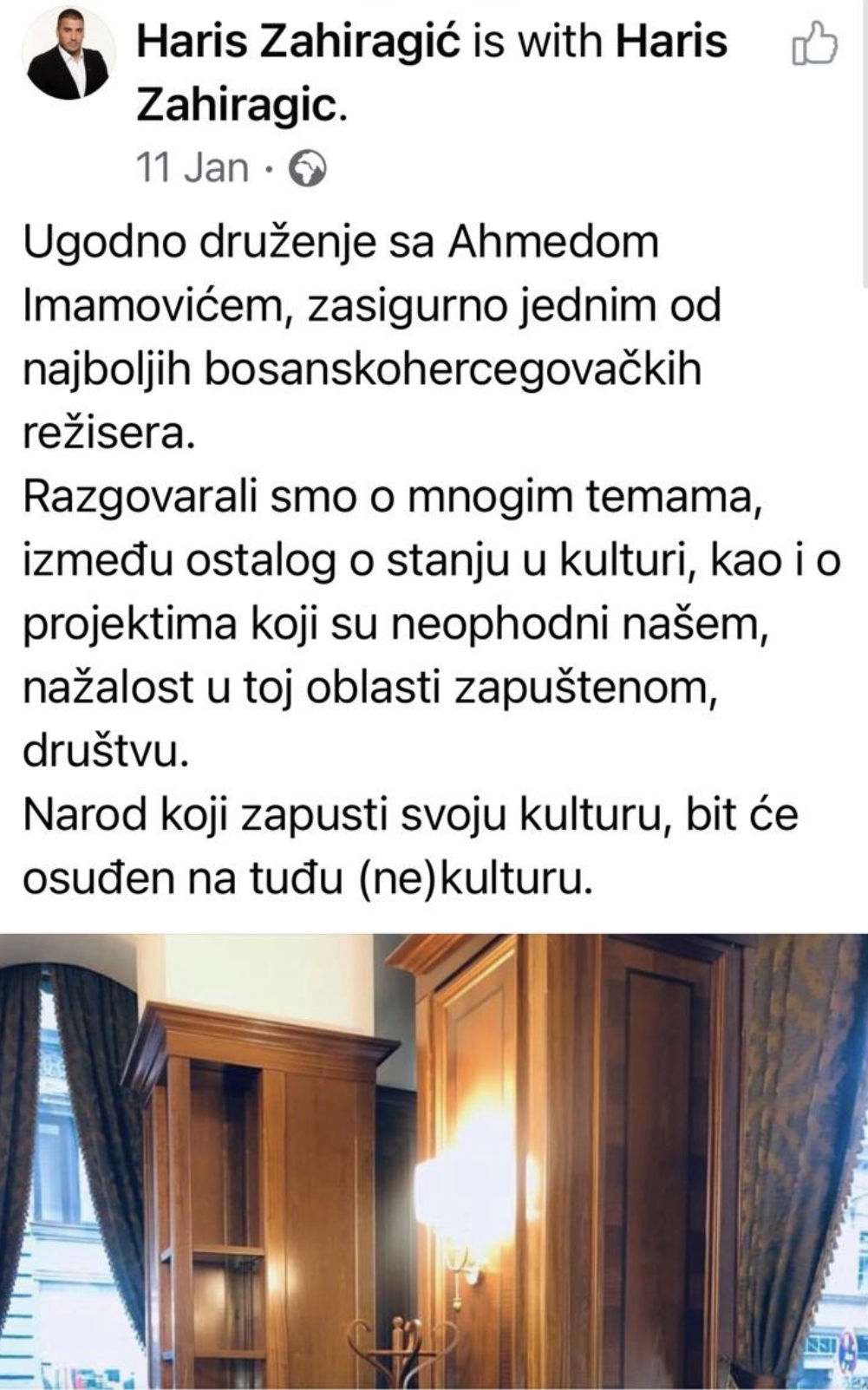 Kako saznajemo, čak je isticao da se Imamović treba izabrati za šefa kulture SDA tj. da se Hadžihafizbegović u potpunosti treba marginalizirati. S obzirom na to da je otvoreno radio protiv Tanović očito je da postoje određena neslaganja Zahiragića s Hadžihafizbegovićem.