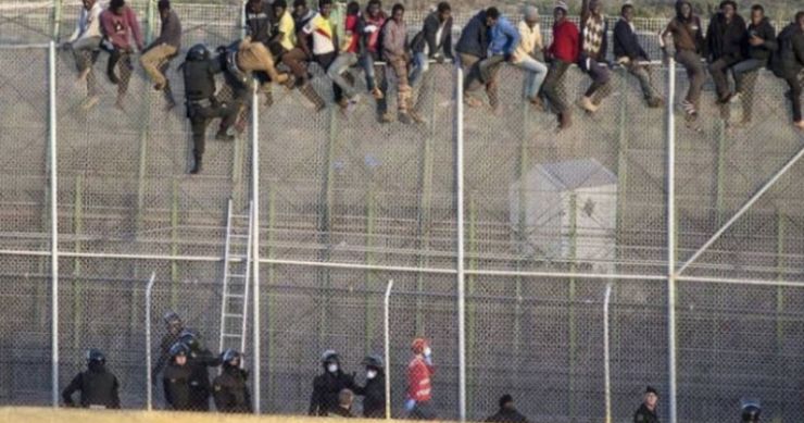 Deseci migranata su preplivavali ili se penjali uz stijene blizu plaže i činilo se da se udaljavaju od mjesta na kojem su stajale trupe. Stotine drugih potencijalnih migranata stajalo je na marokanskoj strani ograde koja odvaja špansku enklavu od Maroka.