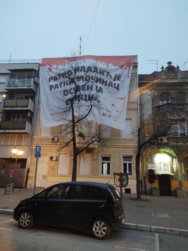 “UOSTALOM, JE*O MU JA MATER…”: Nenad Čanak ispunio obećanje, na zgradi LSV-a osvanuo transparent s porukom o ratnom zločincu Mladiću (FOTO)