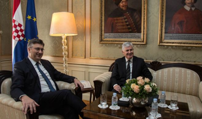 – Plenković iskazao je apsolutnu podršku očuvanju prava Hrvata u BiH te naveo da će vlasti Hrvatske pod njegovim vodstvom nastaviti na unapređenju saradnje s legitimnim hrvatskim zvaničnicima kako bi se dodatno ojačala evropska perspektiva BiH i kako se prava i status hrvatskoga naroda više ne bi dovodili u pitanje – saopšteno je iz HDZ-a BiH.