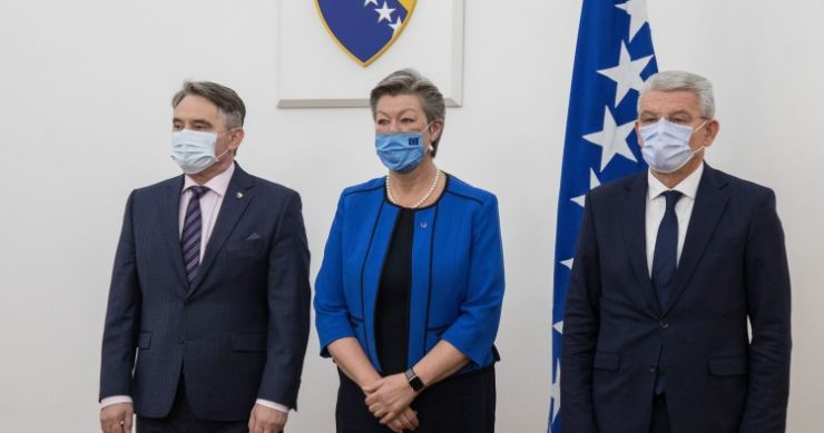 Članovi Predsjedništva BiH Željko Komšić i Šefik Džaferović primili su komesarku za unutrašnje poslove Evropske unije Ylvu Johansson i izrazili zahvalnost zbog interesa EU za partnersku saradnju sa BiH, imajući u vidu i kontinuirane posjete visokih dužnosnika EU Bosni i Hercegovini.