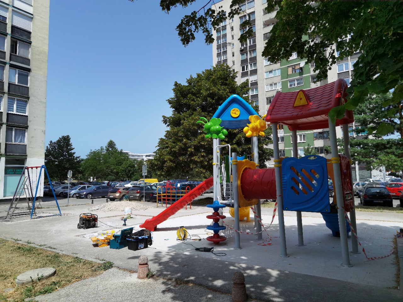 Igralište je u cjelosti obnovljeno, postavljena je antistres gumena podloga, kao i mobilijara za djecu najmlađeg uzrasta. Upotpunjeno je kulom sa toboganom i njihalicama, tako da je uređen prostor i za najmlađu djecu, što je nedostajalo.