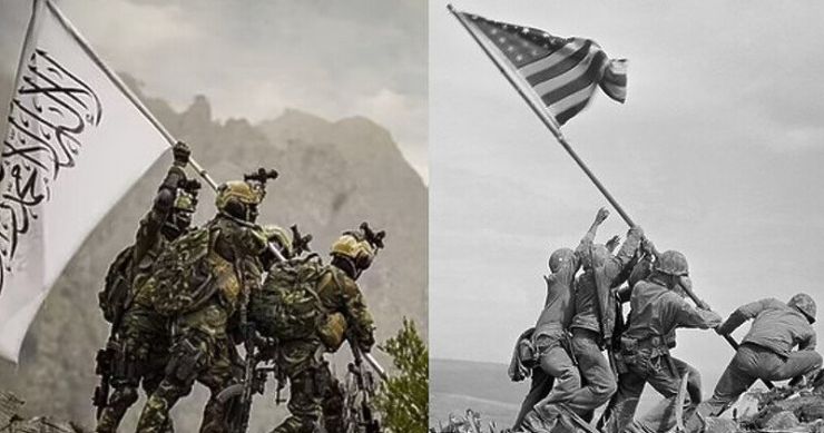 Ova fotografija, na kojoj se mogu vidjeti dobro opremljeni talibani, koji imaju maskirne američke uniforme, kacige, i ostalu opremu i naoružanje i dok podižu talibansku zastavu, posljednjih dana kruži društvenim mrežama.