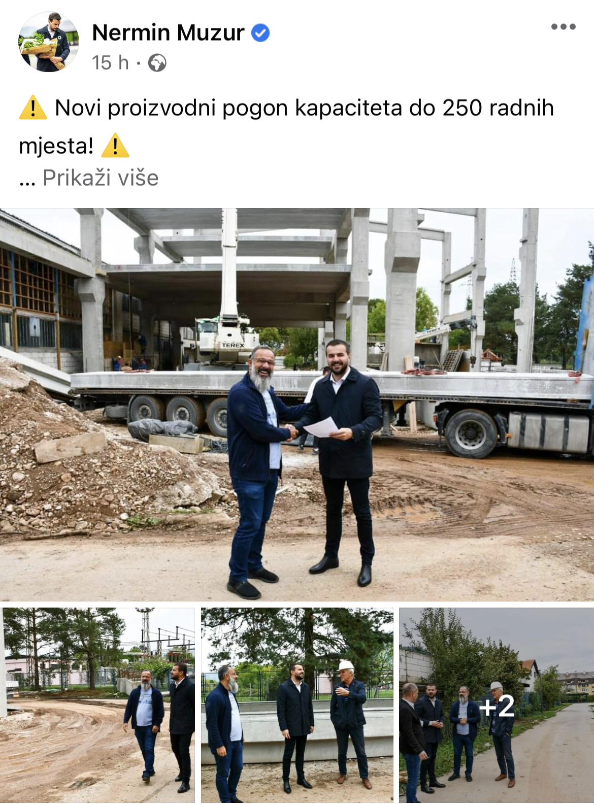 Razlog posjete je bio uručenje Rješenja za gradnju proizvodnog pogona koji će biti kapaciteta do 250 novih radnih mjesta.