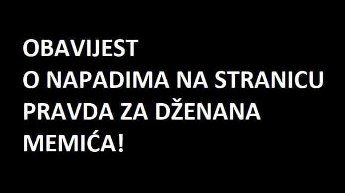 U posljednje vrijeme pokušavaju se napadi na Facebook stranicu Pravda za Dženana Memića obavijestili su javnost sa pomenute stranice.