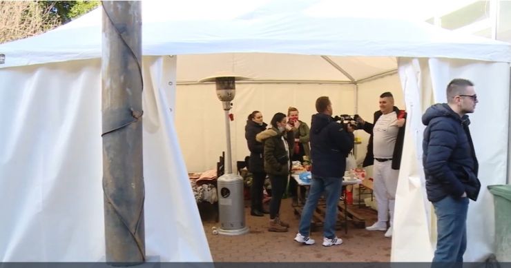 Tokom noći, u šatoru borave tri osobe. Toliko ih može stati u ove krevete. No, tokom dana, brojni posjetitelji. Dobronamjerni građani, a pretežno kolege medicinari. Među prvima je jutros hranu donijela Danijela Kvesić, kuharica u Sveučilišno-kliničkoj bolnici Mostar. Iako u šrajku, mora raditi puno radno vrijeme, jer pacijenti moraju jesti.