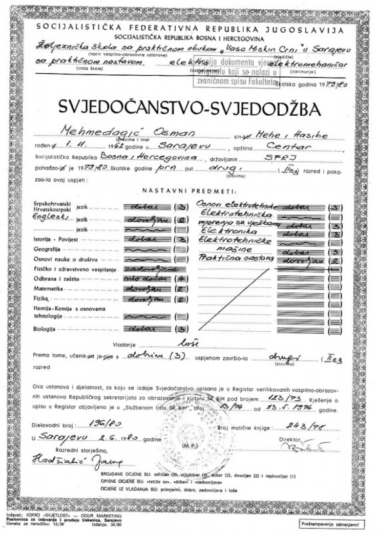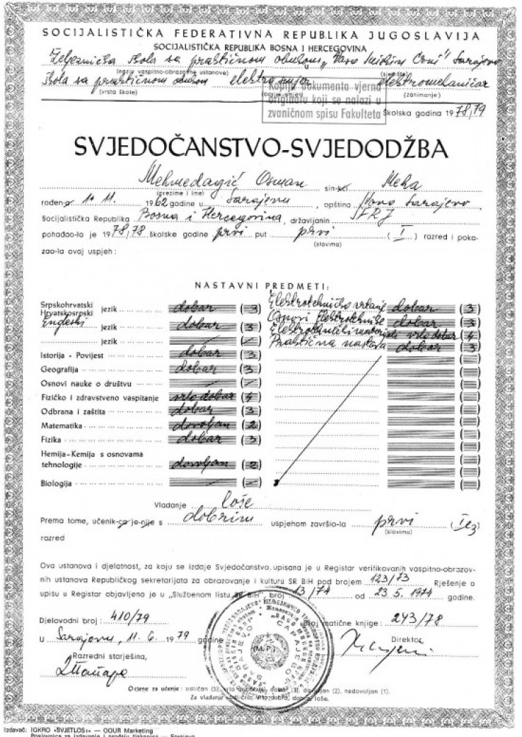 Međutim, kada se pogledaju rezultati Mehmedagićevog školovanja za elektromehaničara, jasno se vidi da se nije proslavio u školskim klupama.