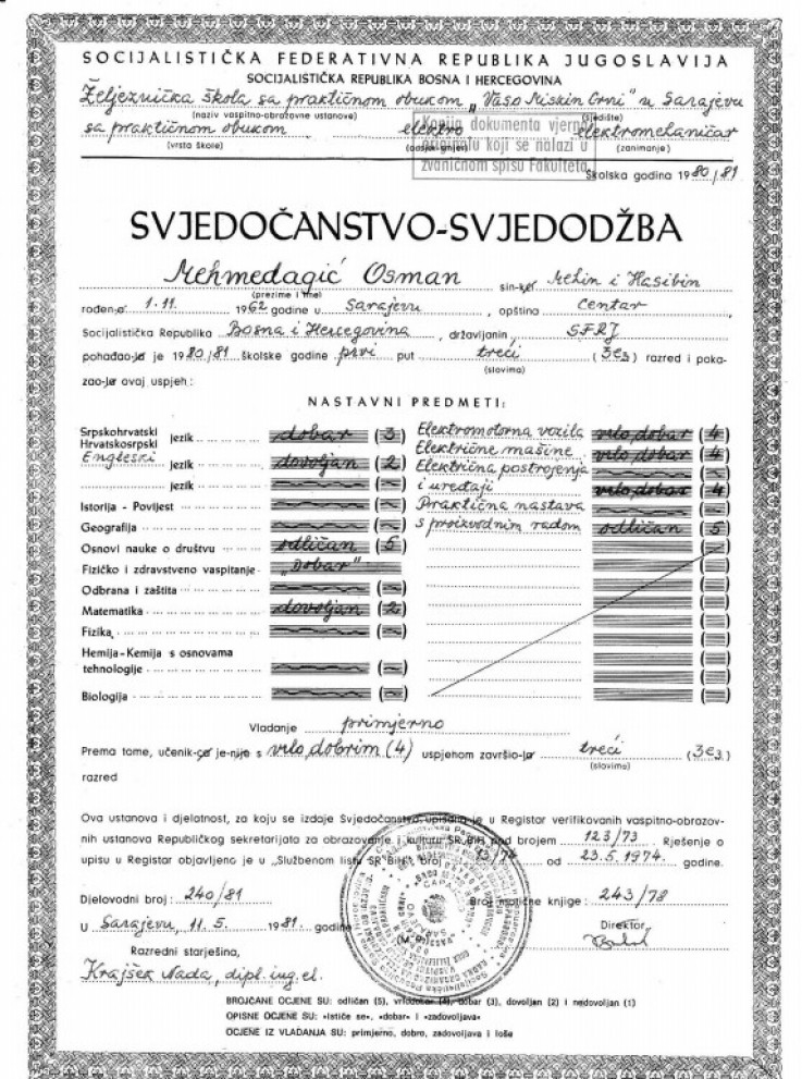Diplomu je dobio 16. juna 1981. godine. Prvi razred upisao je 1978. godine. Prema ovim dokumentima, Mehmedagić, koji je rođen 1962. godine, upisao se u Željezničku školu “Vaso Miskin Crni” u Sarajevu sa 16 godina.
