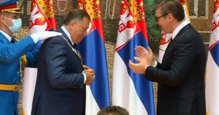 Orden Republike Srbije na velikoj ogrlici uručen je danas u Beogradu predsjedavajućem Predsjedništva BiH Miloradu Dodiku.