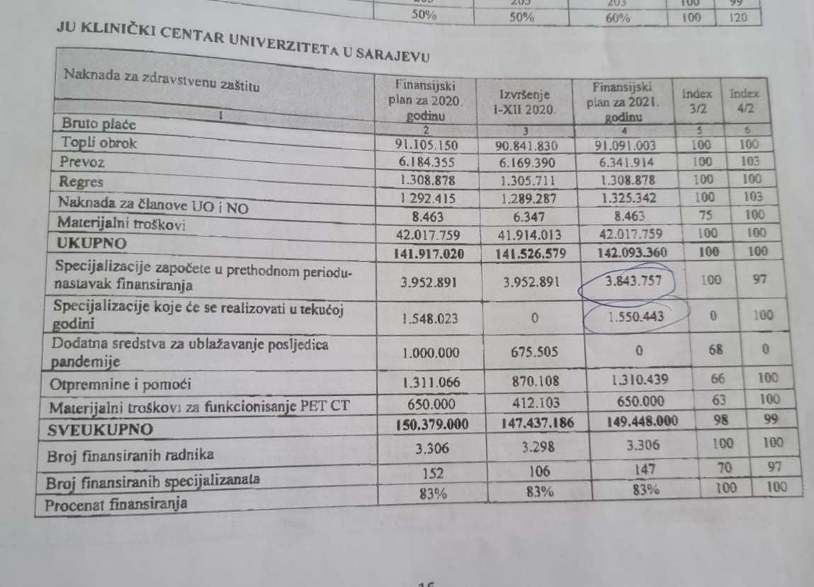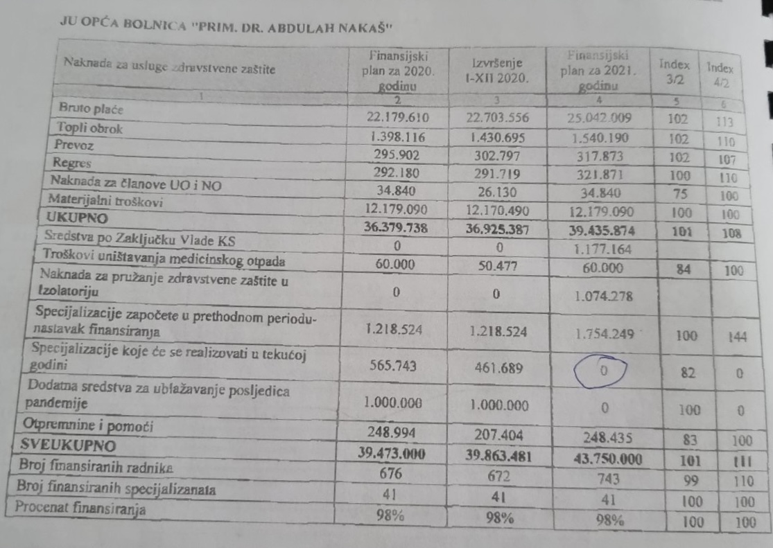 Zašto u finansijskom planu ZZO za 2021.godinu Općoj bolnici Prim. Dr. Abdulah Nakaš nisu odobrena sredstva za specijalizacije koje će se realizovati u tekućoj godini, kao i u nekim drugim zdravstvenim ustanovama, dok je KCUS odobreno?