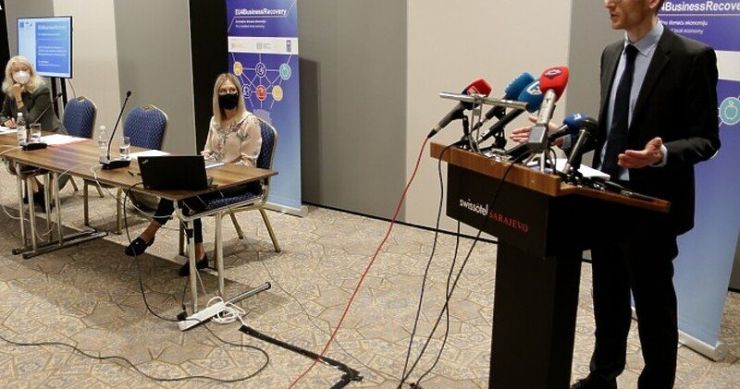 Projekat EU4BusinessRecovery podržava mikro, mala i srednja preduzeća u BiH da nastave sa poslovanjem i očuvanjem radnih mjesta, a posebno će podržati poduzetnice, mlade i druge ranjive skupine u osnivanju vlastitih biznisa i u prevladavanju negativnog učinka pandemije koronavirusa stvaranjem otpornijeg poslovnog okruženja. Ukupna vrijednost projekta iznosi 13,7 miliona eura, a zajednički ga finansiraju Evropska unija (13 miliona eura) i Vlada Savezne Republike Njemačke (0,7 milion eura).
