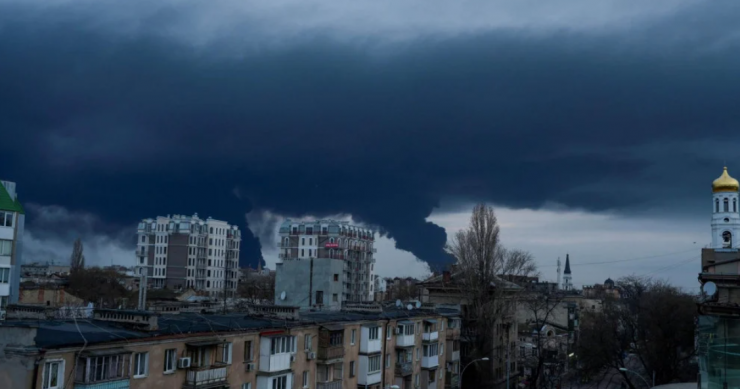 Rusi su raketirali skladišta goriva, a nad gradom se uzdigao ogromni oblak gustog crnog dima.