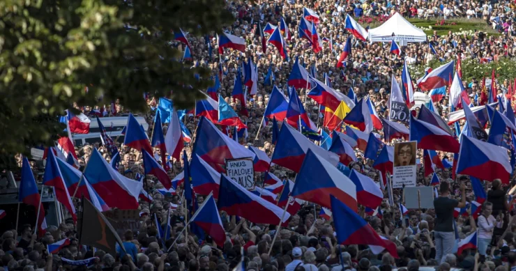 U Pragu je danas, prema procjeni policije, protestovalo 70.000 ljudi, jer su nezadovoljni time kako je vlast reagirala na ekonomsku krizu te njenim odnosom prema Rusiji. Tokom trosatnih protesta tražena je ostavka vlade.