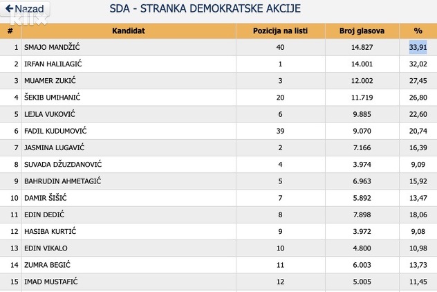Naime, Kudumović je sa 39. kandidatskog mjesta po zbiru glasova sada završio na šestom mjestu jer je osvojio 9.070 glasova ili 20,74 posto.