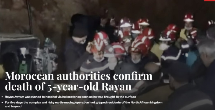 Nakon 120 sati, koliko je dječak Rajan proveo u bunaru u koji je upao 1. febraura, hitno je prebačen u bolnicu helikopterom čim je izvučen na površinu. Međutim, na putu do bolnice nije preživio.