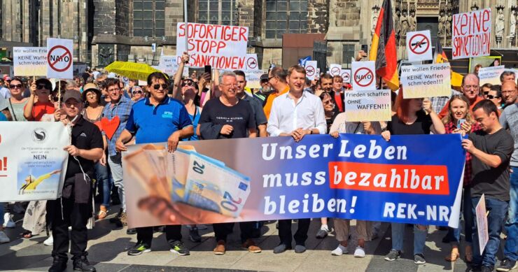 Oko 2000 rusofonih prosvjednika demonstriralo je u nedjelju u Kölnu tražeći od Njemačke da prestane podržavati Ukrajinu i odustane od sankcija koje je uvela nakon što je Moskva izvršila invaziju na svog susjeda ranije ove godine. Skup koji su organizirale skupine rusofone dijaspore u tom gradu dočekalo je nekoliko desetaka protuprosvjednika koji su se okupili pred velikom gotičkom katedralom u Kölnu kako bi izrazili podršku Ukrajini.