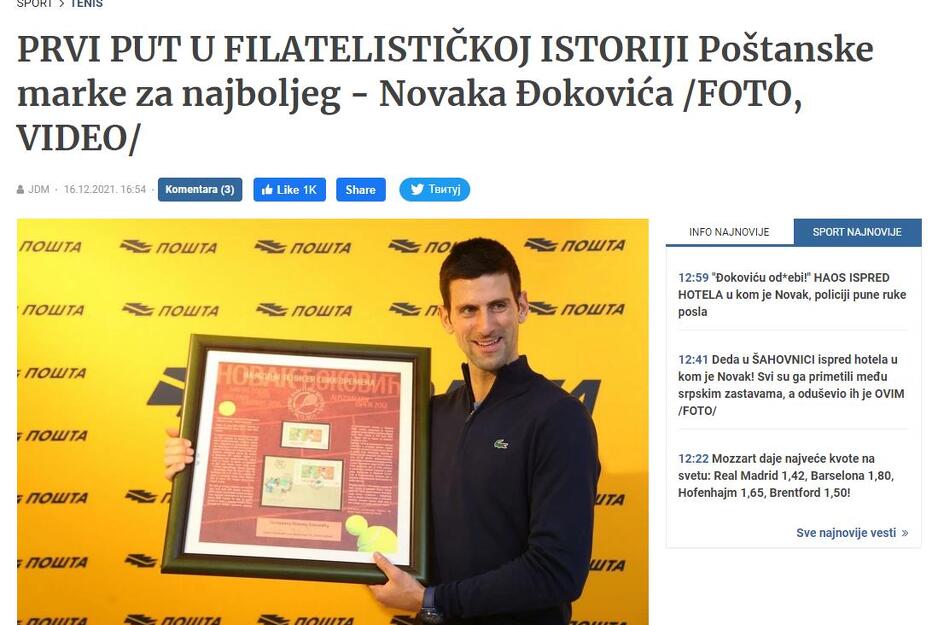 Vijest da je Đoković podijelio pehare baš 17. decembra prenijeli su i brojni srbijanski mediji.