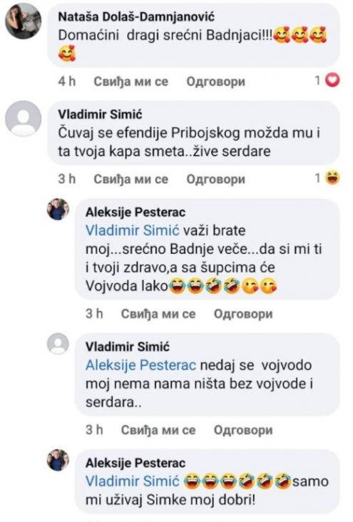 Na društvenim mrežama u istoj noći osvanule su uvrede i prijetnje za efendiju Pribojskog koju su izrečene javno u komunikaciji policajaca Vladimira Simića i Aleksija Pešterca.