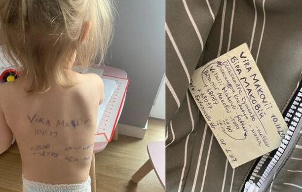 Na fotografiji Aleksandra je na kćerkinim leđima ispisala identifikacijske podatke – ime i prezime, datum rođenja te kontakt njene rodbine, u slučaju da djevojčica ostane siroče ili se izgubi.