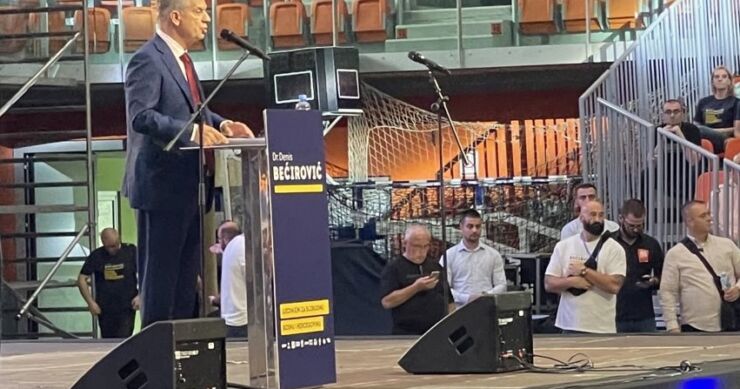 – Denis Bećirović vodi bitku protiv dva SDA kandidata. I Željko Komšić je kandidat SDA, kazao je odmah na početku skupa ujedinjene opozicije koji se održava u Zenici, lider SBB-a Fahrudin Radončić.