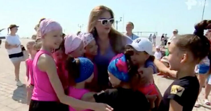 Bivša gimnastičarka i osvajačica olimpijskog zlata, snimljena je u crnomorskom odmaralištu Soči na treningu ritmičke gimnastike djece.