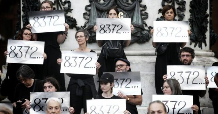 Nevladina organizacija Žene u crnom (ŽUC) održala je večeras na centralnom beogradskom Trgu Republike stajanje u crnini sa šutnjom povodom 27. godišnjice genocida u Srebrenici prilikom kojeg je izvedena i scenska akcija “Srebrenica – ime genocida”.
