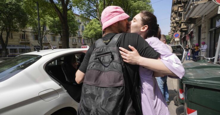 Frontmen ukrajinskog benda Kalush Orchestra koji je jučer pobijedio na Evroviziji snimljen je danas kako se pozdravlja sa djevojkom prije povratka u Ukrajini, gdje će se, piše britanski Daily Mail, pridružiti ukrajinskoj vojsci na prvoj liniji fronta.