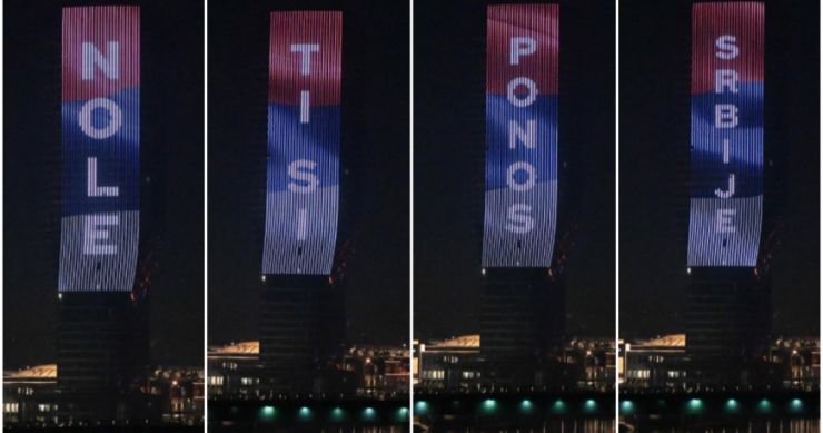 Iz tog razloga objavljena je serija poruka za Đokovića – prvo na Beogradu na vodi, a potom i na kuli West.![]()