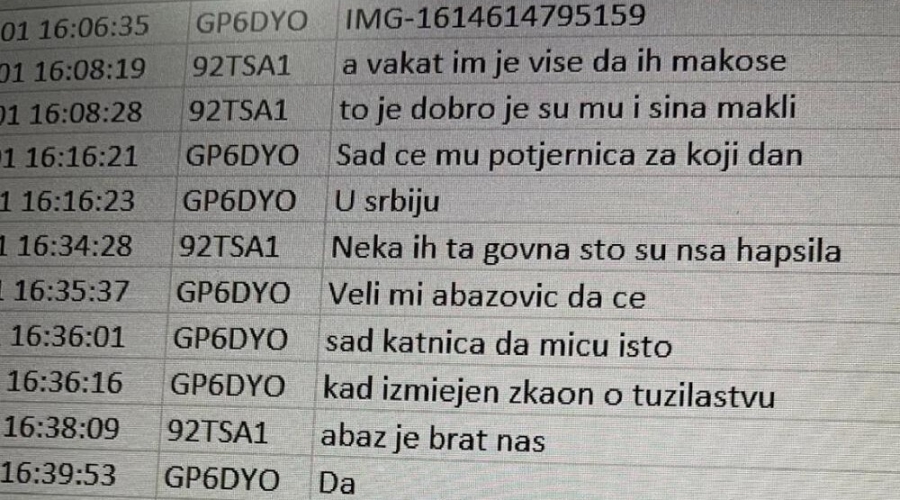 “Svega nekoliko dana kasnije, 1. marta 2021. godine, Vukotić u 16 sati, šest minuta i 15 sekundi u SKY ECC grupu ponovo šalje fotografiju prepiske sa osobom koja ga obavještava „Smjenjen Zoran Lazović i svi čelnici policije, komandiri, načelnici CB-ova, svi!“, na što Vukotić odgovara „Ajde sa srećom mašala“, a njegov sagovornik mu poručuje „Sa srećom!“”, navodi M portal.