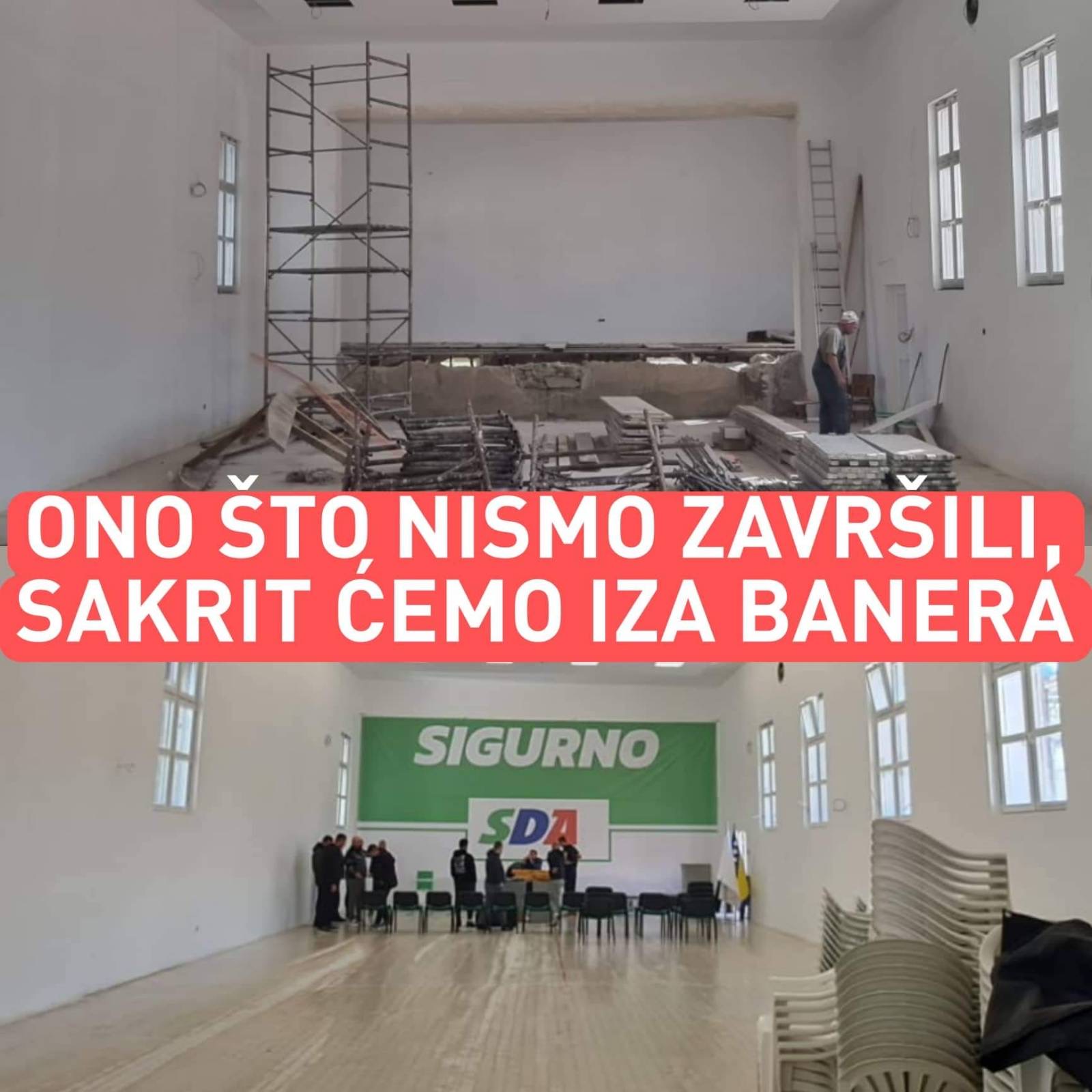 Lakše napuniti društveni dom. Ako, SDA zakaže skup u većem objektu, postoji mogućnost da ostanu prazne stolice, koje će otkriti drastičan pad popularnosti SDA u Hadžićima i Tarčinu.