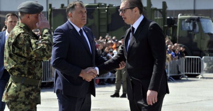 U svakom slučaju, Vučićev režim je upriličio još jednu predstavu za narod. Dok Vučić trenutno ratuje sa zamišljenim protivnikom, budući da je gotovo plačnim glasom morao da obznani da Srbija podržava teritorijalni integritet Ukrajine i na taj način posredno i bijedno osudio rusku agresiju, radikalskim i militarističkim idejama vidljivo i istinski je dirnut Milorad Dodik.