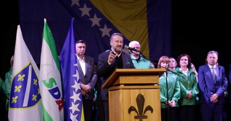 “Ili ćemo imati najtežu krizu ili ćemo imati najveći uspjeh. Pozivamo sve u BiH da uradimo ovo drugo, da budemo razumni i odgovorni, te da pokrenemo zemlju kao nikada do sada. Tražimo 350.000 glasova za SDA. Pojačajte motor koji sve vrijeme vuče zemlju u pravom smjeru. Zauzvrat garantujemo mir, sigurnost, izgradnju infrastrukture, borbu protiv korupcije kakvu do sada niste vidjeli, reformski put. Rezultat svega toga će biti 50 posto više plaće i penzije do kraja mandata”, izjavio je Izetbegović.