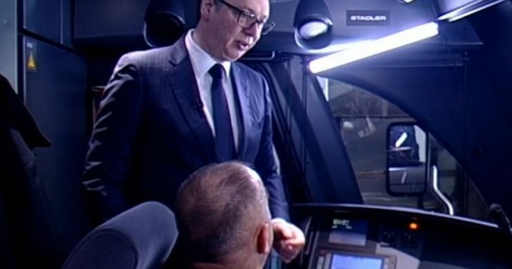 Pošto se Vučić obraća iz voza, što je neobično mjesto za intervju, tim povodom predsjednik Srbije je rekao: “Nema ljepšeg mjesta za obraćanje od ovog predivnog voza koji smo kupili od Švajcaraca”.