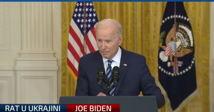 Američki predsjednik Joe Biden obraća se novinarima povodom rata u Ukrajini.