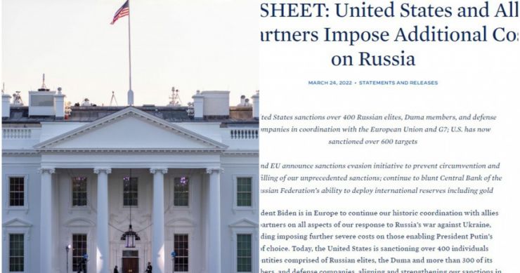 Mjere, koje uključuju zamrzavanje imovine u vlasništvu SAD, izdvajaju 328 članova donjeg doma ruske Državne dume i 48 odbrambenih kompanija “koje pokreću ratnu mašinu (predsjednika Vladimira) Putina – navodi se u saopćenju objavljenom.