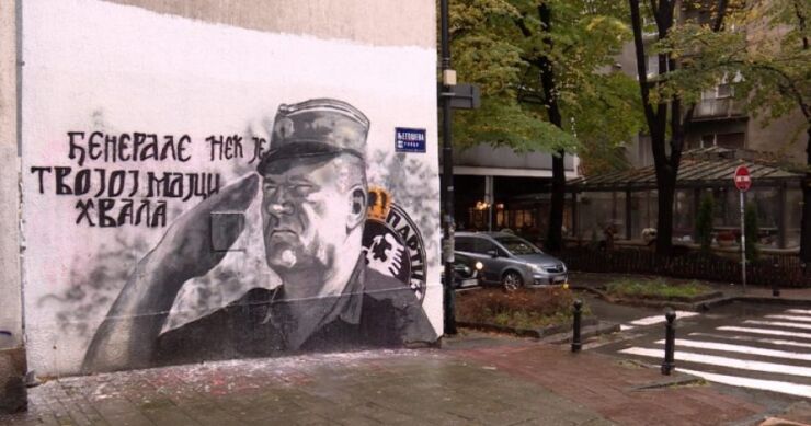 Mural s likom Ratka Mladića osvanuo je 23. jula u Beogradu prošle godine, a već narednog dana crvenom bojom ižvrljana je ruka kojom Mladić salutira, podsjeća se u saopćenju.